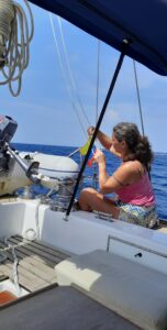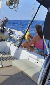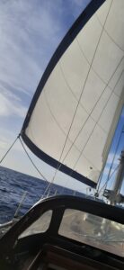 Die Nacht war ganz ok, es war angenehm warm und es hat nicht geregnet. Wir haben in der Plicht übernachtet und dort abwechselnd etwas geschlummert. Nach 9 Monaten Segelpause ist es aber doch ziemlich anstrengend wieder einen vernünftigen Rhythmus zu bekommen. Wir müssen ja auch gleich eine so große Strecke segeln…..eigentlich total blöd….