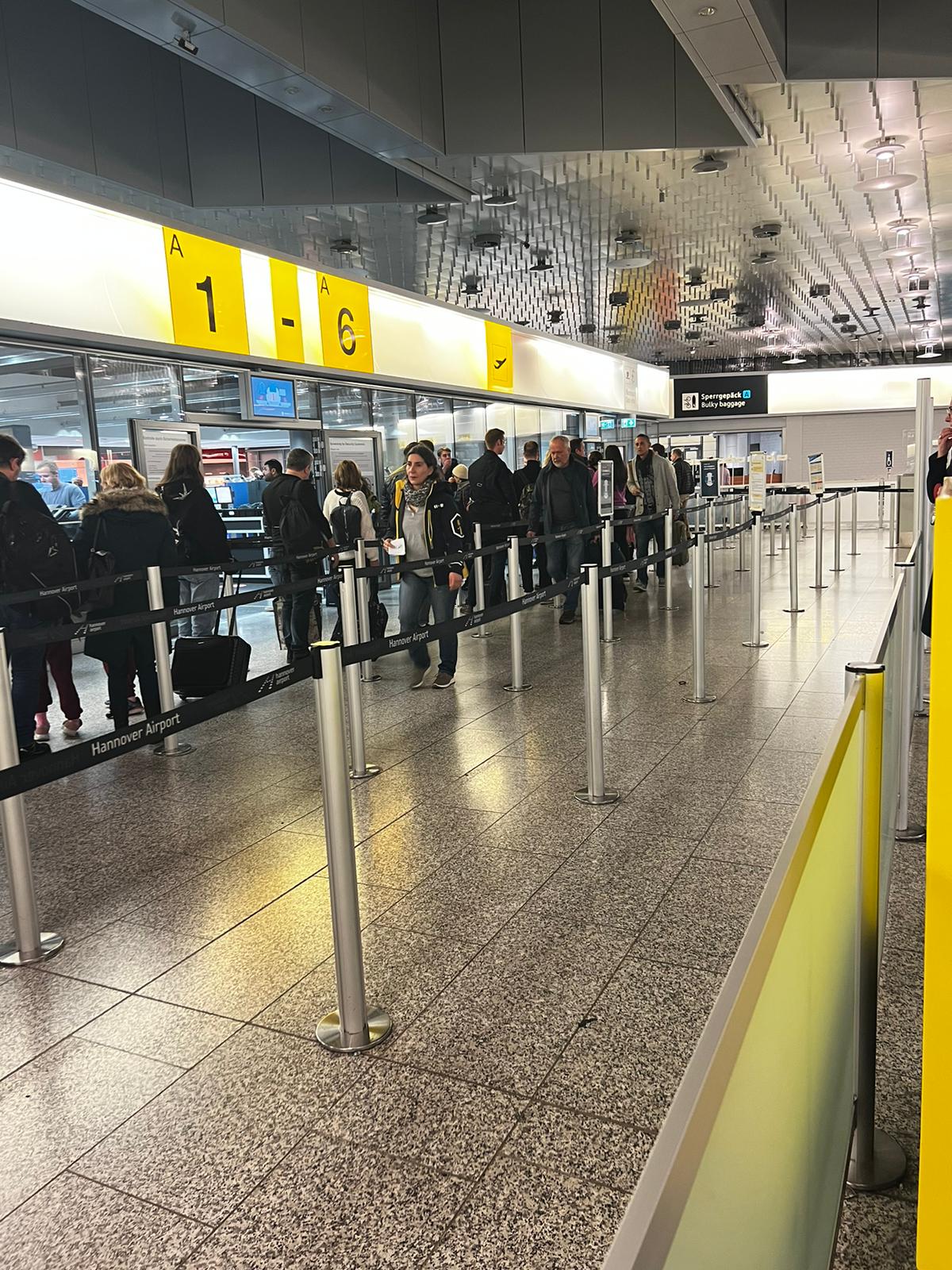 Kurz vor vier Uhr am Morgen sind wir am Flughafen Hannover und können auch zügig unser Gepäck abgeben. Die Dame an der Abfertigung ist super freundlich und interresiert, wo man mit so einer Menge Gepäck hinwill. Wir erzählen ihr, was wir vorhaben und könne sogar ohne Aufpreis noch ein Teil unseres Handgepäcks, eine 6 kg schwere Tasche mit Lungenautomaten fürs Tauchen, als Aufgabegepäck loswerden. Nun haben wir nur noch die Laptoptasche, einen kleine Koffer und einen Rucksack….