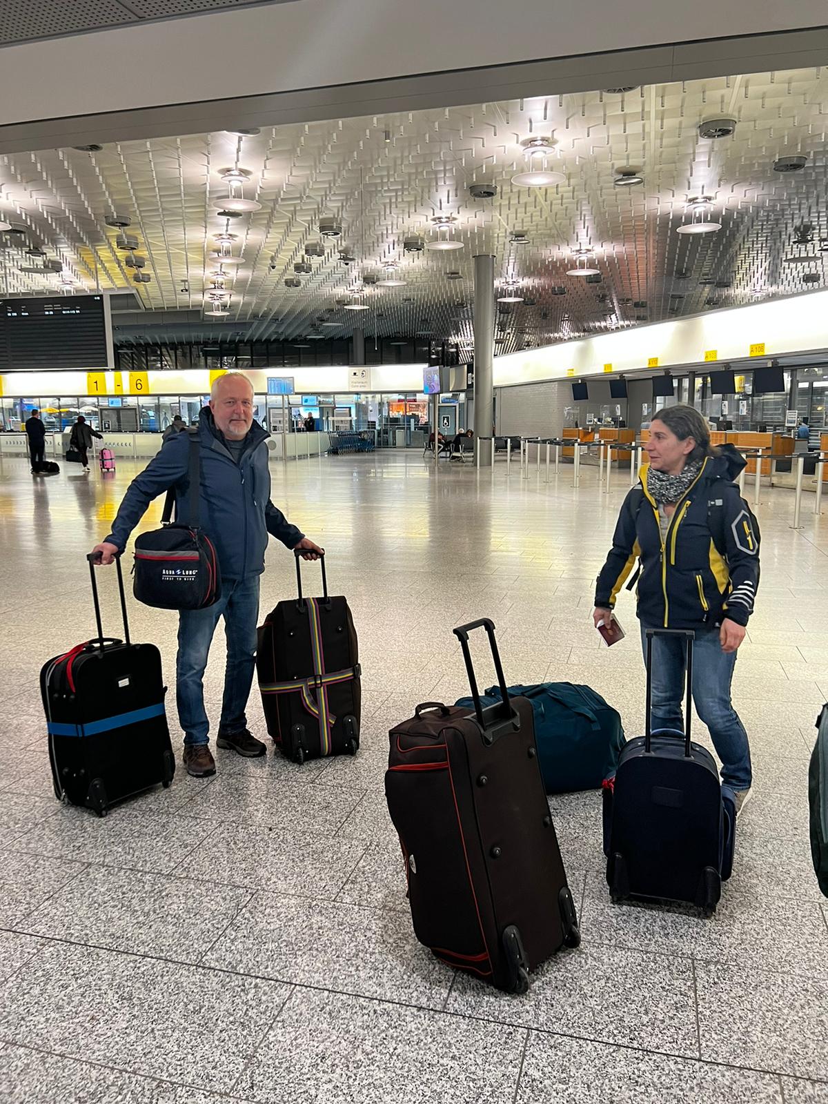 Kurz vor Mitternacht schlummere ich dann endlich auch etwas ein, der Wecker ist für 2.50 Uhr gestellt, also habe ich nicht allzu viel Zeit zum schlafen, scheinbar brauche ich auch nicht so wirklich Schlaf. Ich bin wohl doch ziemlich aufgeregt, ob ich es nun zugeben will oder nicht. Als dann der Wecker klingelt ist es somit auch kein Problem für mich aus dem Bett zu hüpfen und ein letztes Mal Kaffee mit Strom aus der Steckdose zu kochen. Gegen halb vier wecken wir Miriam, sie muss uns zum Flughafen fahren. Unsere vier riesigen Taschen und unser nicht gerade kleines „Handgepäck passen gerade so in die kleine A-Klasse. Gestern noch haben wir ewig gebraucht und die Koffer immer wieder gewogen, bis wir endlich pro Koffer die 23 erlaubten Kilogramm nicht mehr überschritten. Dadurch ist unser so genanntes Handgepäck auf das Maximum angeschwollen…..eigentlich ist nur einer der vier Koffer mit Klamotten von uns gefüllt, die anderen drei sind voll mit Ersatzteilen, Dieselfiltern, Ölpumpen, Schrauben, Schläuchen, Spachtelmasse, und zur Krönung schleppen wir auch noch ein Leichtwindsegel incl. Bergeschlauch mit…Wahnsinn…bin gespannt, was der Zoll dazu sagen wird. Inventarlisten haben wir auf jeden Fall erstellt.