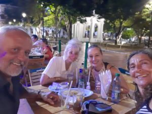 Wir brauchen zuerst eine kolumbianische Simcard. Ein Freund, der vor einiger Zeit schon hier war, gab uns genaue Anweisung, wo wir eine günstige und gute Internetflat bekommen. Wir fragen uns in den Straßen Santa Martas durch. Da niemand englisch spricht, ist es nicht so einfach. Mit den paar Brocken spanisch, die Andreas kann und mit Händen und Füßen, finden wir den Laden dann doch. Die freundliche Verkäuferin richtet uns das Handy auch gleich ein und wir können wieder am virtuellen Leben teilnehmen. Wir telefonieren mit Familie und Freunden zu Hause. Auf dem Rückweg zum Hafen bummeln wir durch einige Geschäfte und lernen dabei 2 deutsche „Mädels“ kennen. Wir sind uns auf Anhieb sympatisch und verabreden uns zum Abendessen in einem Restaurant, nicht weit von der Marina entfernt. Es wird ein wirklich schöner Abend mit den Beiden. Vieleicht sieht man sich ja irgendwann in Deutschland mal wieder…..