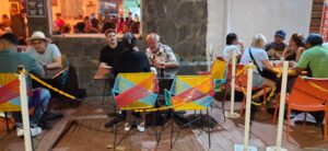 Da die Beiden noch nicht zu Abend gegessen haben, gehen wir in die Stadt, direkt neben der Marina. Wir werden von feierwütigen, lauten Kolumbianern überrascht. Die gesamte Stadt „prodelt“, man kann sein eigenes Wort nicht verstehen, tausende Menschen drängen in den engen Gassen, alle zwei Meter andere Musik, umherziehende Musiker überall. Einen freien Tisch zu finden ist heute gar nicht so einfach, aber es gelingt irgendwie….unser Besuch ist froh, als es dann endlich zum Boot zurück geht. Nach 24 Stunden Flug eine solche Begrüßung ist dann doch etwas zu viel. Sie fallen todmüde in ihre Kojen…..