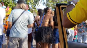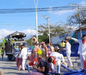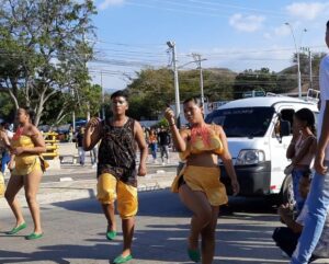 Wir fahren durch das feiernde Santa Marta, da Karneval ist und der wird gefeiert und das sehr, sehr lautstark. Einige Straßen sind gesperrt, die Leute sind bunt geschminkt, leuchtende Neonfarben sind angesagt und einstudierte Tänze werden präsentiert. Der Taxifahrer hält einige Male an  und jubelt mit….was für eine ausgelassene Stimmung.