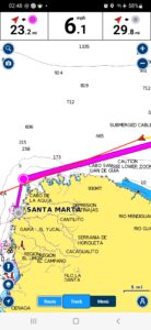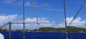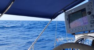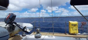 Tag 2 unterwegs nach Kolumbien. Kein anderer Segler begegnet uns, kein anderes Schiff in Sichtweite, kein einziges AIS-Signal auf dem Plotter, einfach gar nichts. Nur Wasser, Wellen, mal hoch, mal nicht ganz so nervig… Die Sonne scheint, wir müssen uns im Schatten verstecken, um keinen Sonnenbrand zu bekommen. Der Tag vergeht, einfach so….wir essen, wechseln uns zur Wache ab, lesen, dösen und freuen uns auf Kolumbien. Wir werden wohl noch 2 Tage und 2 Nächte unterwegs sein, bis wir Santa Marta erreichen.