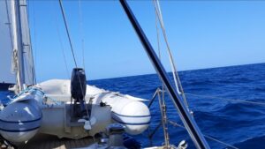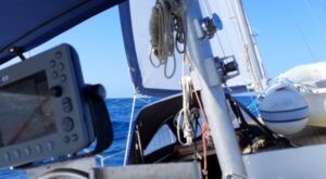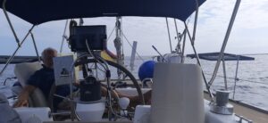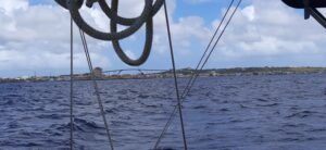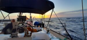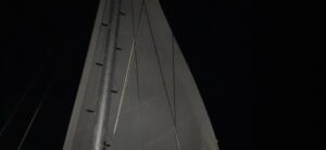 Wir werden morgen ankommen, da wir unbedingt im Hellen in den Hafen wollen, müssen wir etwas langsamer werden. Wir verkleinern das Vorsegel, das Großsegel haben wir gar nicht gesetzt. Vor uns liegen mit Sonnenuntergang noch ca. 60 sm. Wir haben es fast geschafft.