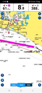 Am Morgen ist es ziemlich windig in der Ankerbucht Spanish Water und wir überlegen, ob wir heute tatsächlich aufbrechen sollten, oder vieleicht doch erst morgen. Da das Wetterfenster bis nach Santa Marta aber für die nächsten Tage gut aussieht, lichten wir gegen 11.00 Uhr unseren Anker und machen uns auf den Weg nach Kolumbien. Es wird wahrscheinlich eine 3 Tages-Tour und wir hoffen, auf gute Winde. Die Ausfahrt aus dem sehr engen Fahrwasser am Barbara Beach ist spannend und wir sind heilfroh ohne Grundberührung das offene Meer zu erreichen.