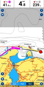 Der Wind schiebt uns regelrecht, auch wenn er ziemlich stark weht, fühlt es sich nicht unangenehm an, da er fast von hinten kommt und so nicht so spürbar ist. Die Minna ist mal wieder richtig schnell, mit durchschnittlich 9 Knoten gehts die Westseite von Curacao nach Norden, vorbei an Willemstad. Nun drehen wir nach Westen ab. Ca Mitternacht segeln wir an Aruba vorbei, nur die Lichter der Insel sind zu sehen. Leider begleitet uns diesmal kein Vollmond, so ist sehr dunkel und die Küste Arubas nur zu erahnen….wir legen an diesem Tag ca 90 sm zurück.