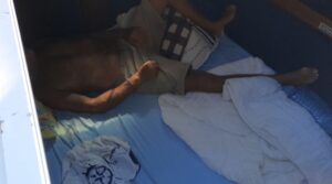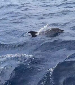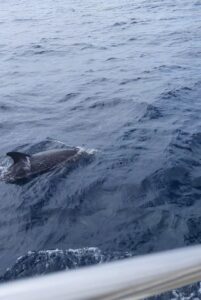 Auch dieser Tag ist nicht wirklich erlebnisreich, außer dass uns am Vormittag eine riesige Gruppe Delphine ein Stück begleitet. Es sind sehr viele Tiere, aus allen Richtungen kommen sie, scheinbar neugierig, zu uns. Sie schwimmen links und rechts, vor und hinter der Minna. Man hat echt das Gefühl, die Tiere wollten Kontakt zu uns aufnehmen, ganz nah am Boot springen sie, wie eingeübt mehrere gleichzeitig aus dem Wasser…ein tolles Schauspiel. Nach einer halbe Stunde sind plötzlich alle weg. Wir ziehen auch weiter unsere Bahnen durchs karibische Meer Richtung Kolumbien. Leider geht es Andreas nicht ganz so gut. Die Rückenschmerzen sind sehr präsent und auch der Husten will nicht besser werden. Er ruht sich so oft wie nur möglich aus und ich halte Wache. Sobald wir ankommen, werden wir noch einmal einen Arzt aufsuchen.