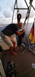 Heute früh ist der Wind moderat und wir können ganz entspannt Richtung Curacao starten. Die Technik scheint auch zu funktionieren, der Autopilot findet heute mal zur Abwechslung sofort ein GPS-Signal, der Motor springt ohne Probleme an und der Plotter tut auch was er soll….fein…