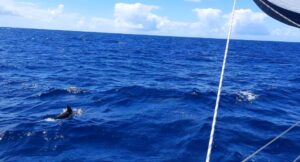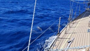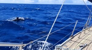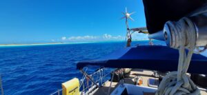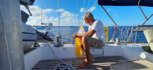 Aber als wir eine freie Boje ansteuern, kommt wie aus dem Nichts ein Mann mit dem Dingi und will helfen….was für ein Glück, morgens 7.00 Uhr und er ist, warum auch immer, schon unterweg. Es ist ein super netter Kanadier vom Boot nebenan. Wir liegen nun gut festgemacht an unserer Boje und können uns entspannen. Nach ca. 20 Stunden segeln ist das auch bitter nötig, wir sind müde und k.o.
