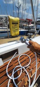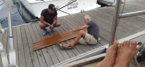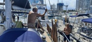 Als wir in die Marina zurückkehren, wird dort schon wieder eine Bühne aufgebaut. Scheinbar wird hier auf dem Marina-Gelände oft und gern groß gefeiert. Der Anlass allerdings, erschließt sich uns aus den Werbebanner nicht. Wir vermuten, es hat irgendwas mit dem World Cup zu tun, sind uns aber nicht sicher.