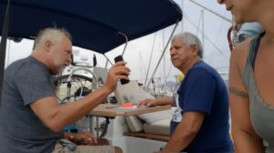 Gegen 19 Uhr startet die Livemusik und die Gäste treffen ein. Wir haben von der Minna freie Sicht auf die Bühne und an schlafen gehen ist vorerst nicht zu denken, die Musik dröhnt durch den gesamten Hafen. Erst 3 Uhr morgens geben die Feierwütigen Ruhe…..