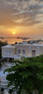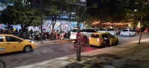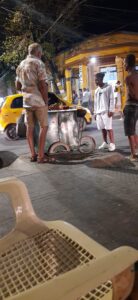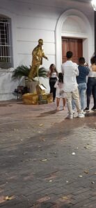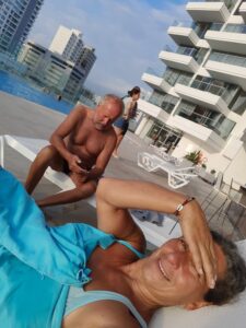 Es ist wieder absolut windstill und somit sehr heiß, wir beschließen wieder mal zum Pool des Mariott-Hotels zu gehen. Die Abkühlung ist herrlich, der Pool ist meist nur wenig besucht, man hat eine tolle Aussicht aufs Meer und den Hafen und die Partymusik von der Promenade ist bis hierher zu hören. Anschließend wollen wir mal schauen, wie kolumbianische Frauen den Festtag feiern.