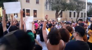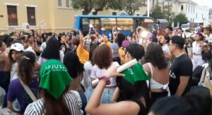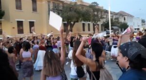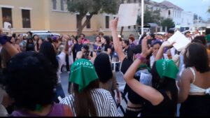 Sie feiern kräftig, sehr, sehr laut, sehr, sehr bunt. Es wird getrommelt, gesungen, getanzt. Eine üppige Latina ist mit einem Mikrofon bewaffnet, sie singt und tanzt und alle anderen Frauen machen es ihr gleich. Lebensfreude pur, ansteckend und fröhlich, laut und bunt. Eine lange Zeit stehen wir dabei und beobachten das wilde Treiben. Einige Frauen haben zusätzlich Plakate dabei, die sie aber beim Tanzen nicht stören 🙂
