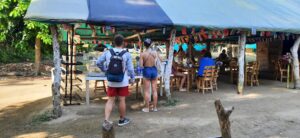 Gestern hat sich Andreas um eine Rückfahrt per Boot gekümmert. Es gibt wohl Motorboote, mit denen man zurück nach Tanganga fahren kann. Dazu müssen wir noch einen Strand weiter wandern, zum Capo San Juan. Der Weg dorthin ist nicht weit, ca. 1 Stunde brauchen wir dafür. Dieser Strand ist hoffnungslos überfüllt, auch hier gibt es einen Zeltplatz, nur um einiges größer und längst nicht so schön, wie unserer letzte Nacht. Einge Snackbuden stehen am Strand, es gibt ein großes Restaurant. Der wirklich sehr schöne Strand erstreckt sich über zwei Buchten, nur leider eben sind hier viele Menschen im und am Wasser….das Motorboot ist schnell gefunden, wir reservieren vier Plätze, 16 Uhr soll es losgehen. Bis dahin essen wir eine Kleinigkeit und genießen ein Coconut-Shake.
