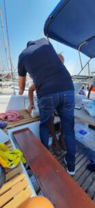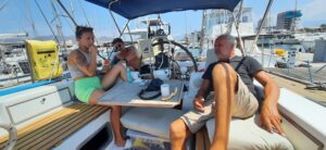 Unser letzter gemeinsamer Tag heute. Es ist wieder völlig windstill und somit brütend heiß. Auch ohne die kleinste Bewegung läuft der Schweiß….wir kühlen uns im Hotelpool des Mariott-Hotels ab. Dort dürfen wir als Marina-Gäste schwimmen. Es ist eine herrliche Abkühlung. Länger als zehn Minuten kann man es auf der Sonnenliege nicht aushalten, schnell ins kühle Nass.