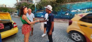 dieser junge Mann verkauft Eis auf der Straße, wir kennen ihn seit 14 Tagen, er möchte sich von den Beiden verabschieden