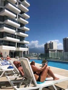 Der erste Flug nach Bogota startet vorraussichtlich pünktlich, die Koffer können die Beiden unkompliziert abgeben, sie werden sie erst in Hannover wiedersehen. Von Bogota gehts dann recht zügig weiter nach Frankfurt/Main und nach einer längeren Wartezeit nach Hannover. Durch die Zeitverschiebung von 6 Stunden, werden sie erst morgen Abend, ca. 22 Uhr dort landen. Wir schätzen, dass sie dann gegen Mitternacht endlich in Celle ankommen….ein weiter Weg. Wir sind total glücklich, dass sie diesen weiten Weg zu uns auf sich genommen haben. Es waren zwei wunderbare Wochen.