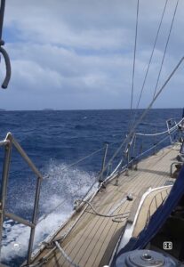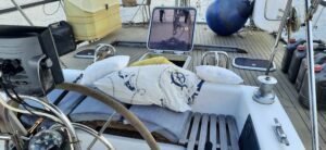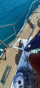 Bis zum ersten Wegepunkt können wir toll segeln, dann kommt der Wind zu sehr von vorn und wir müssen motoren. Wieder mal sind es nur ca 9 sm bis zum Ziel.