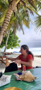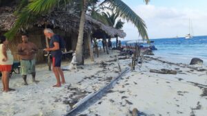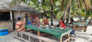 Flux das Dingi runter und ab zum Strand. Nadja, Vanessa und Harry sitzen schon in der kleinen Bar, die von zwei jungen Kunas geführt wird.