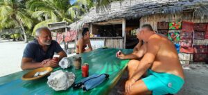 Später umrunden wir die Insel, treffen ein paar Einheimische, die hier in einfachsten Verhältnissen leben. Sie sind sehr freundlich zu uns….