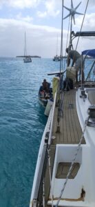 Nachmittags unternehmen wir unseren obligatorischen Inselrundgang, das ist bei der Größe dieser Inseln hier kein Problem, in ca 40 Minuten haben wir sie umrundet. Zwei kleine Bars gibt’s auch schon, die Seglern treffen sich hier und verbringen die Zeit an Land.