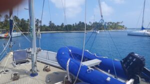 Die Cayos Holandes sind gut besucht von Seglern aus der ganzen Welt. Viele verschiedene Flaggen sind zu sehen, darunter auch ein paar Deutsche.