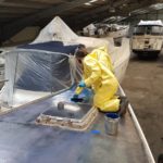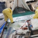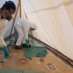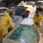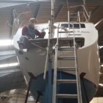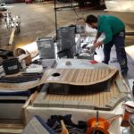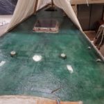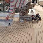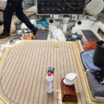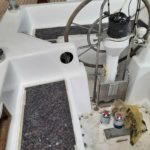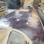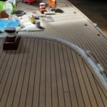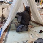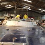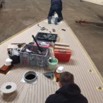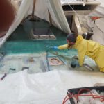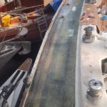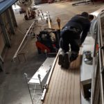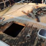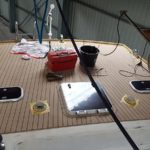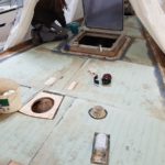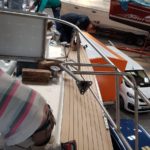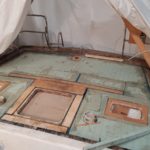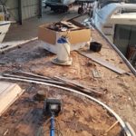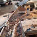 Eigentlich wollten wir nur das alte undichte Teakdeck entfernen, um uns Kunststoff-Teak anfertigen und auflegen zu lassen, dann die Überraschung…der gesamte Sandwichkern aus Balsa-Holz war verrottet. Somit hatten wir eine riesige Baustelle….